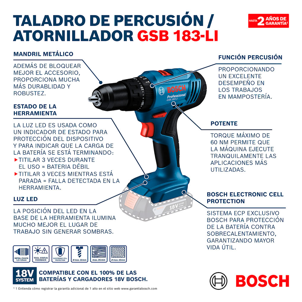 – Compatible con toda la gama de baterías Bosch 18V Professional