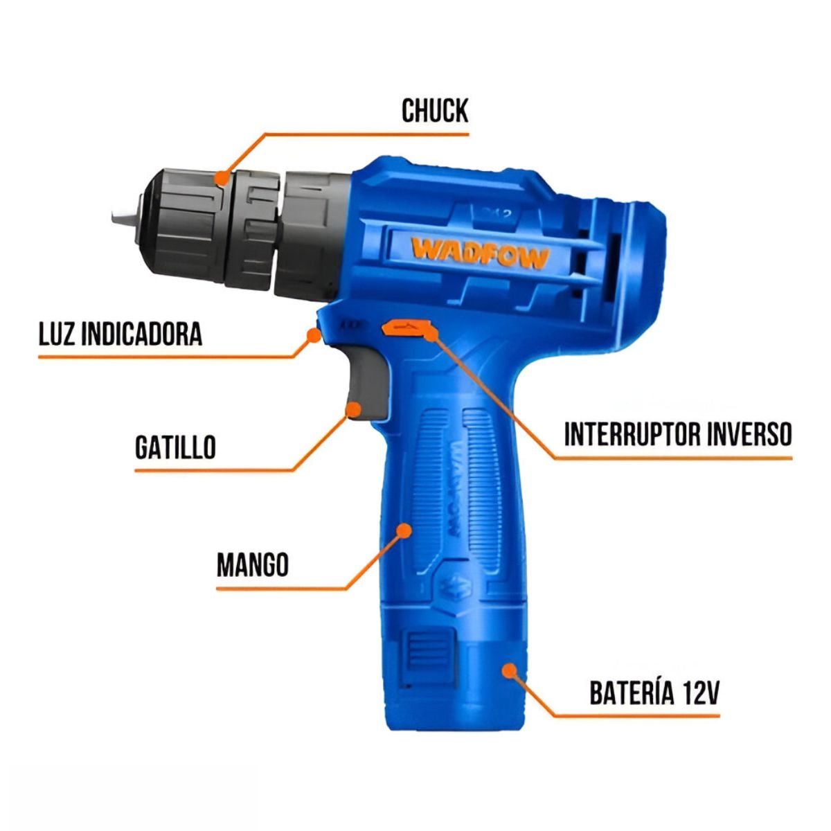 Taladro Inalámbrico 12V Wadfow + Batería y Cargador 12V