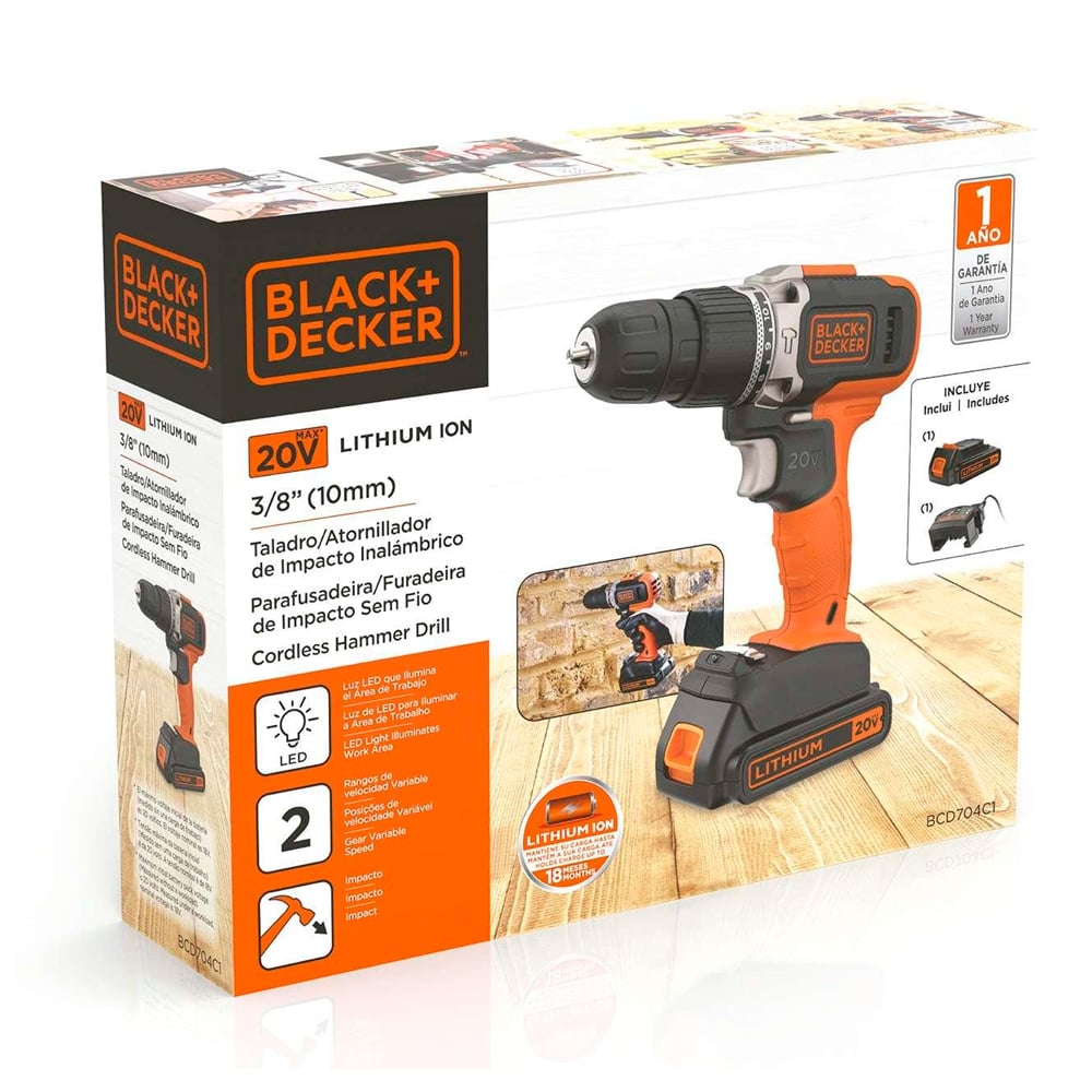 Taladro Percutor 3/8″ Black & Decker BCD704C1 20V Litio