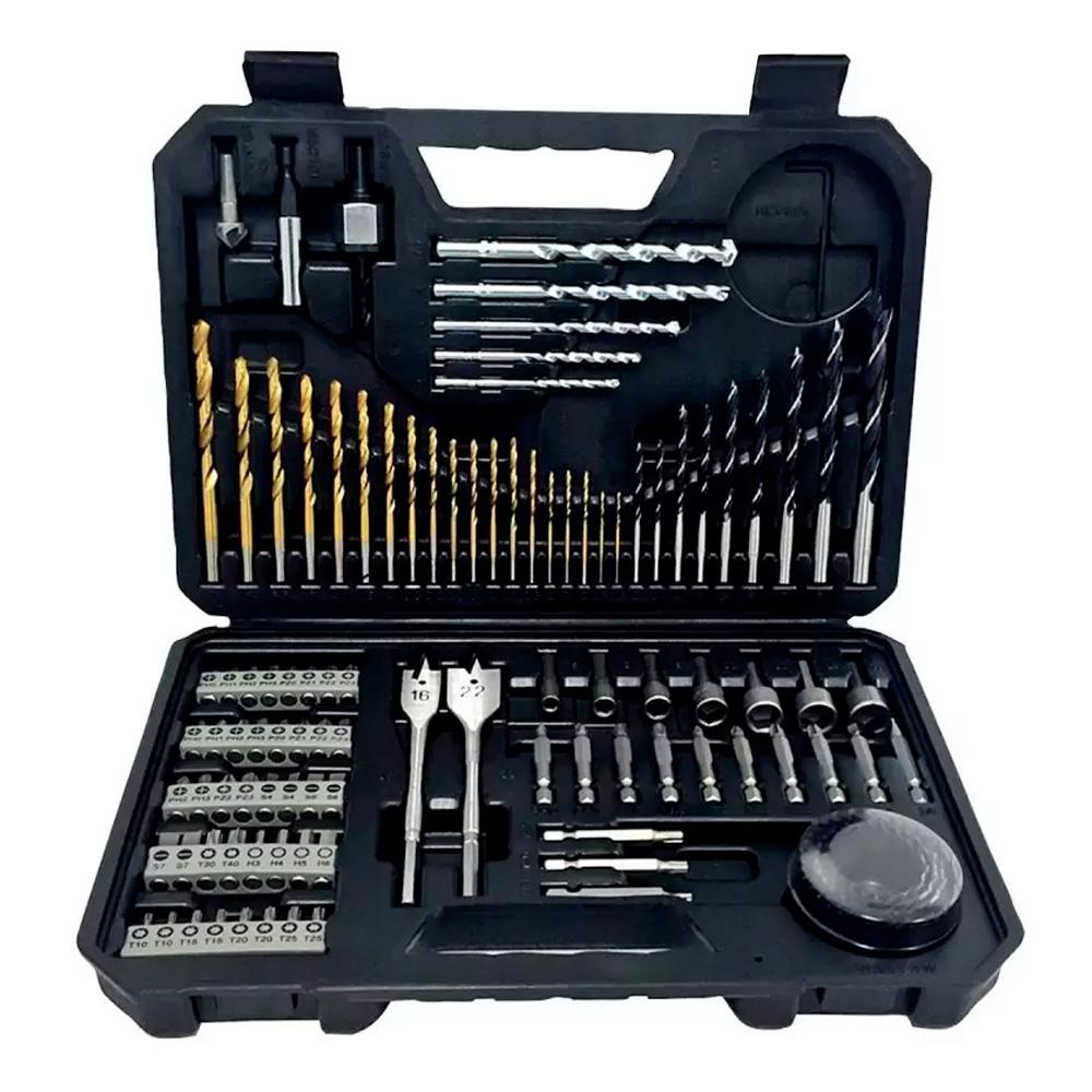 Las brocas estándar incluyen cinco brocas para mampostería, nueve brocas para madera y dos brocas de pala.