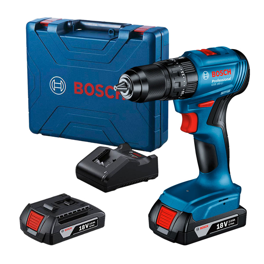 Taladro Percutor Bosch GSB 185-LI + 2 Bat 2.0 Ah + Maletín