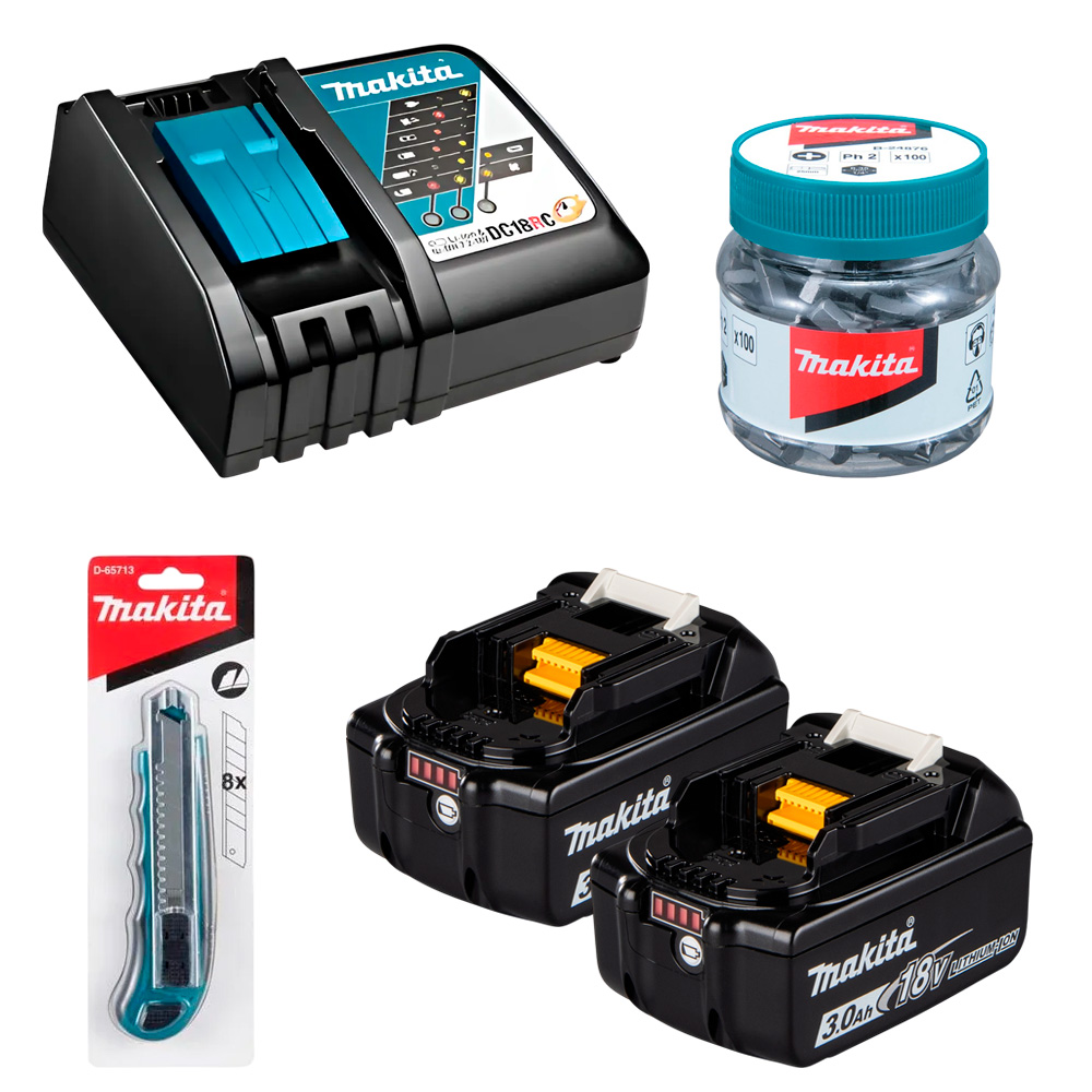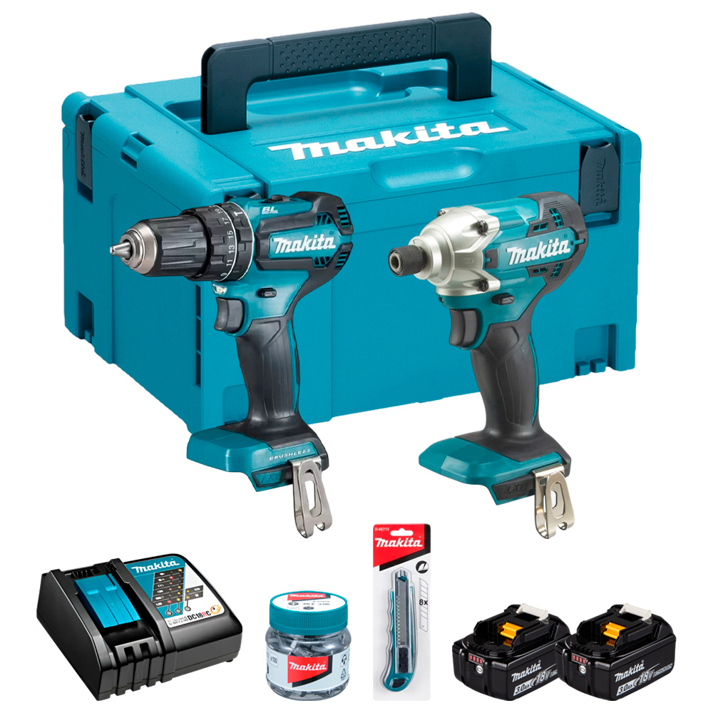 Taladro Percutor DHP485+Atornillador DTD156+2 Bat Makita