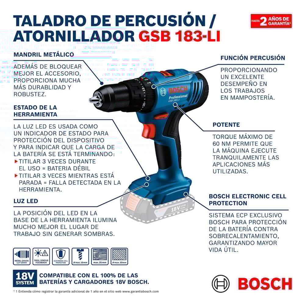 Taladro Atornillador Percutor Bosch GSB 183-LI 18V + Batería