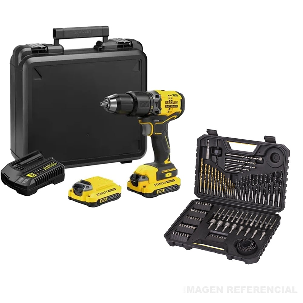 Taladro Percutor Stanley SBD715C2K 1/2″ 20v XR + Set 100pz