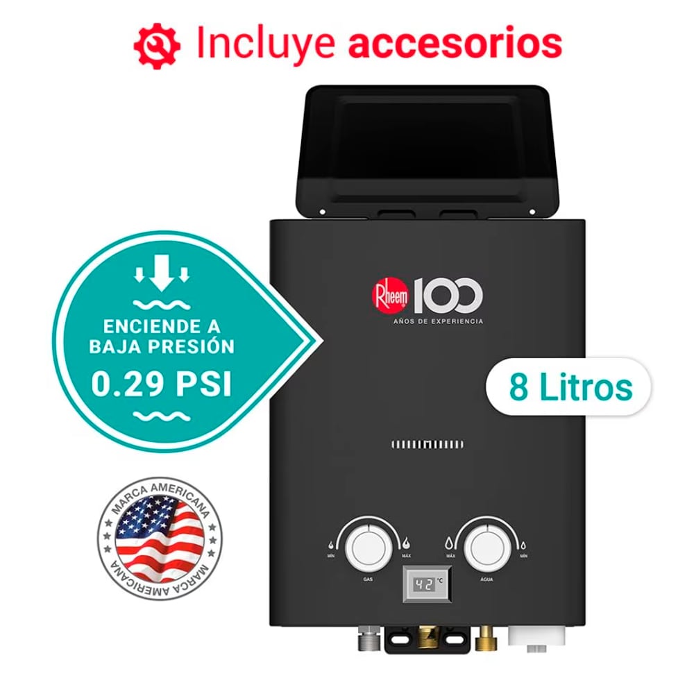 Terma a Gas 8L GLP Tiro Natural Rheem