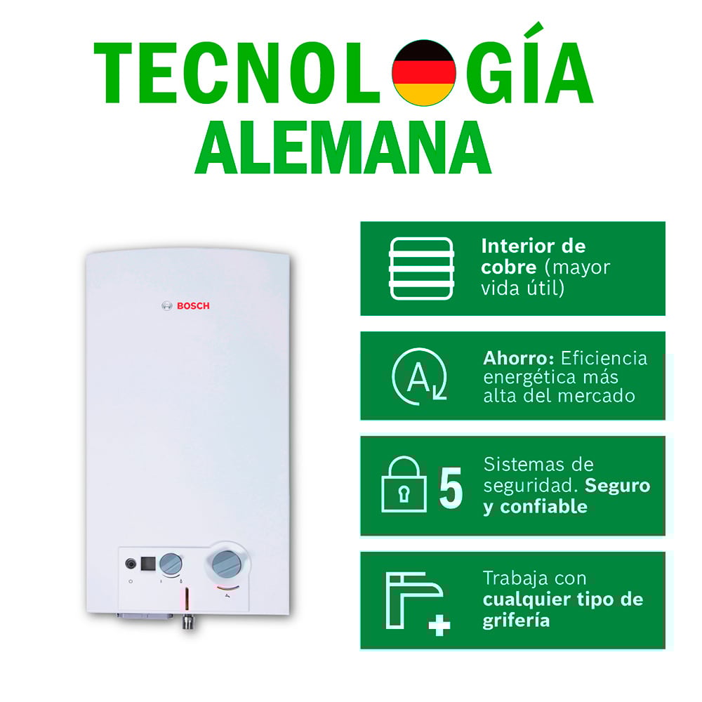 5 sistemas de seguridad (sensor de llama, limitador de temperatura, sensor de temperatura de gases quemados, sensor de temperatura a la salida de agua y caja de control).