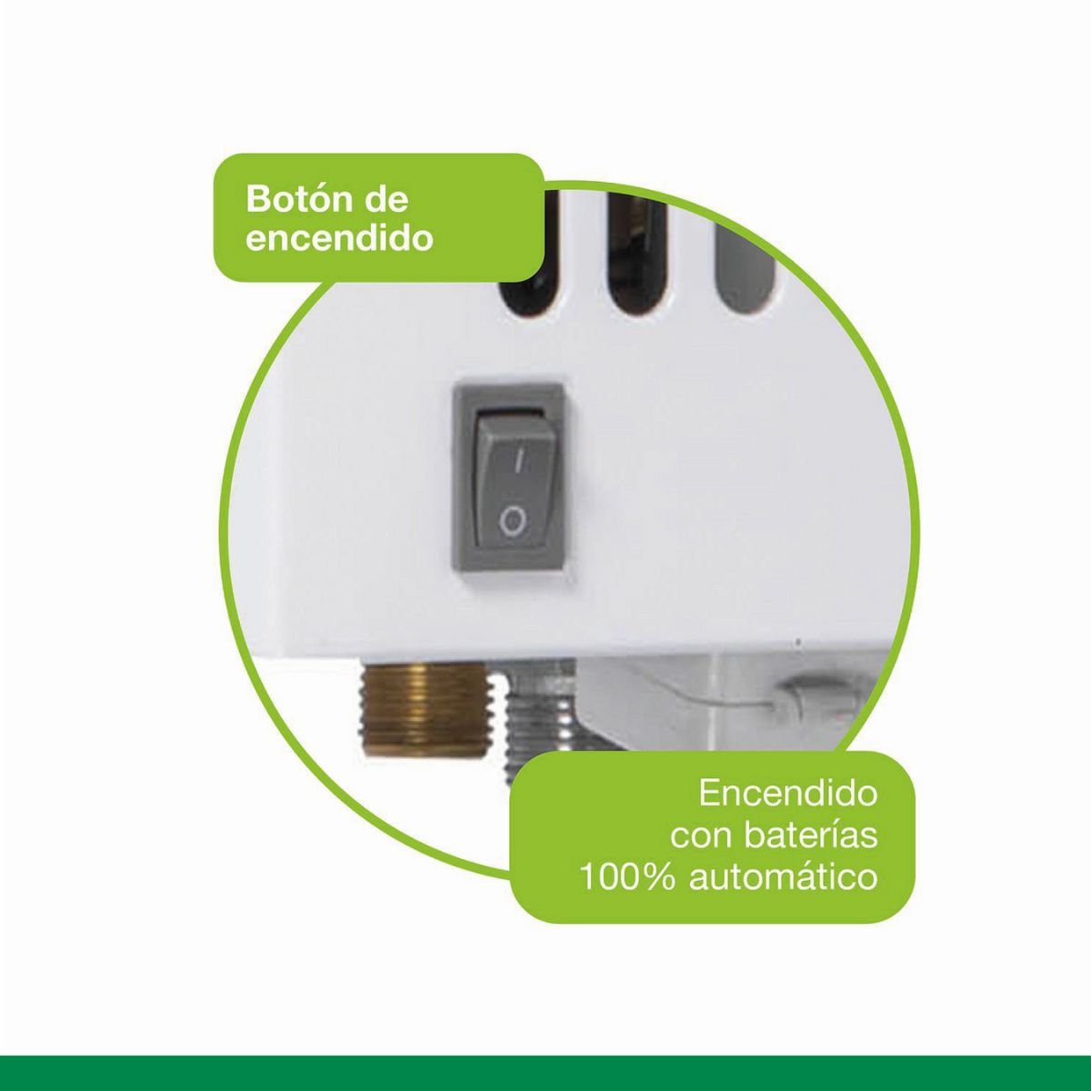 Posee botón de encendido y apagado permitiendo desactivar el calentador sin necesidad de cerrar el suministro de gas.