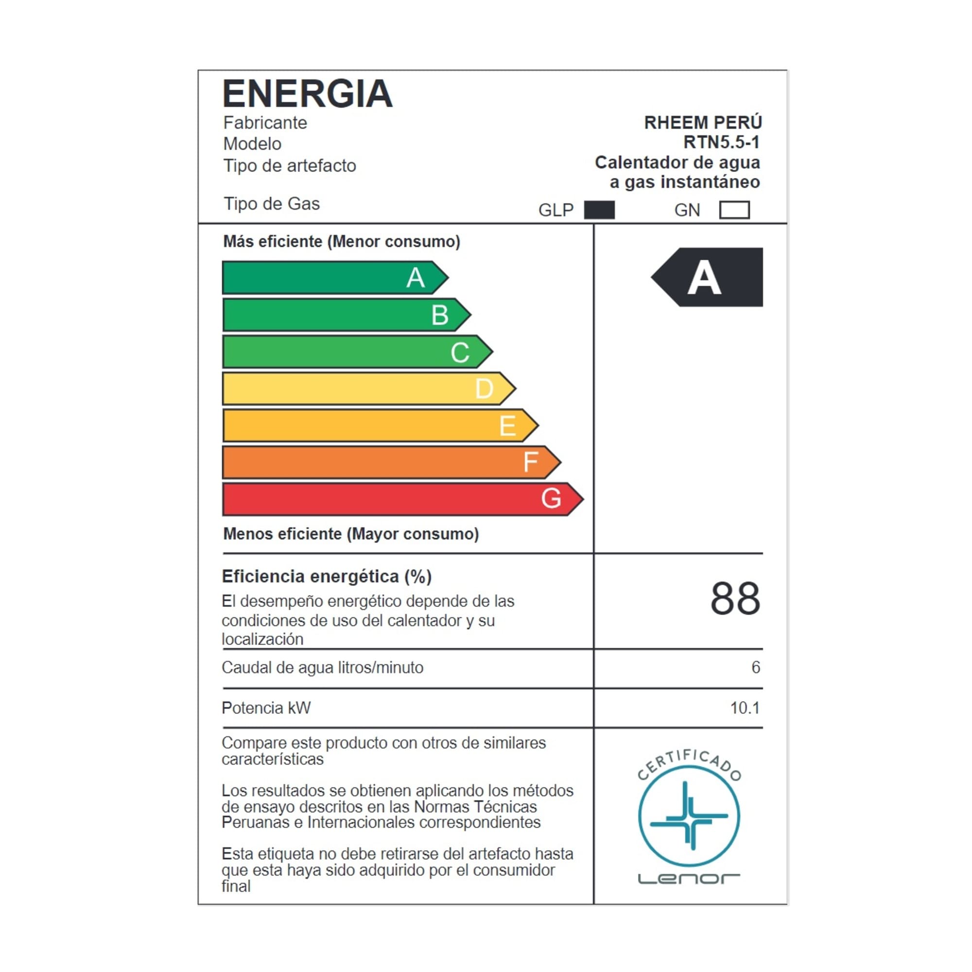 Terma a gas Rheem Class de 5.5 Litros, baños más relajantes con agua caliente al instánte.