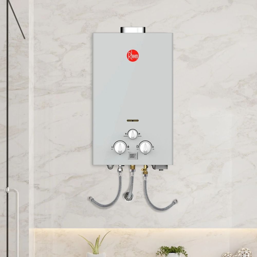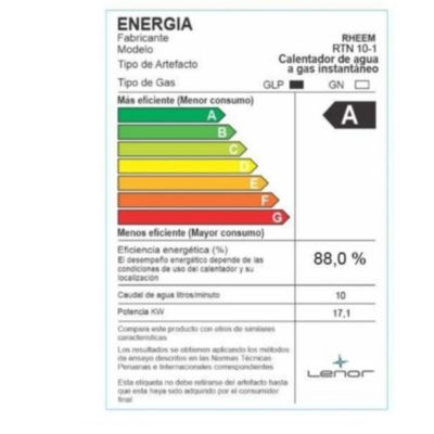 La Terma a Gas Rheem Class GN 10L es ideal para hogares y empresas que necesitan abastecerse de agua caliente ilimitada. Producto para usar con redes de Gas Calidda y Promigas. Este modelo destaca por su eficiencia energética tipo A y su capacidad para encenderse automáticamente, incluso con un bajo caudal de agua y baja presión.