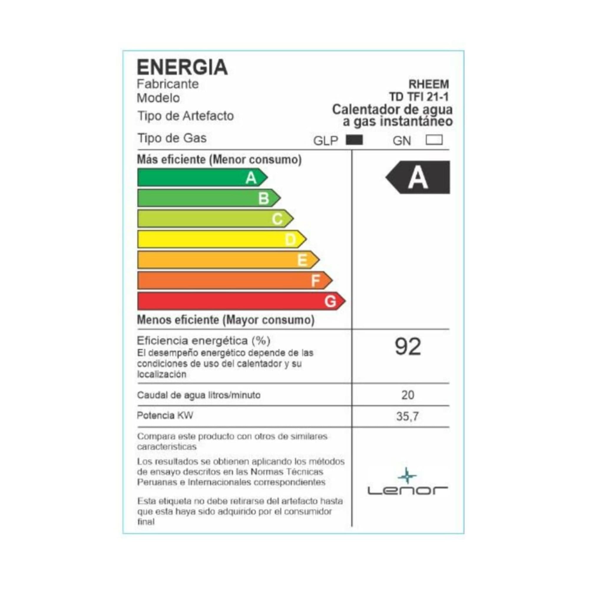 Rheem Terma A Gas Tiro Forzado 21L Glp – Prestige