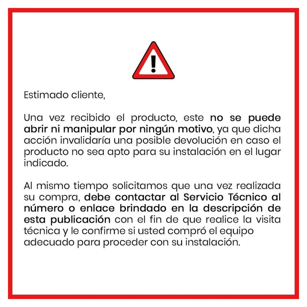Al mismo tiempo solicitamos que una vez realizada su compra, debe contactar al Servicio Técnico al número o enlace brindado en la descripción de esta publicación con el fin de que realice la visita técnica y le confirme si usted compró el equipo adecuado para proceder con su instalación.