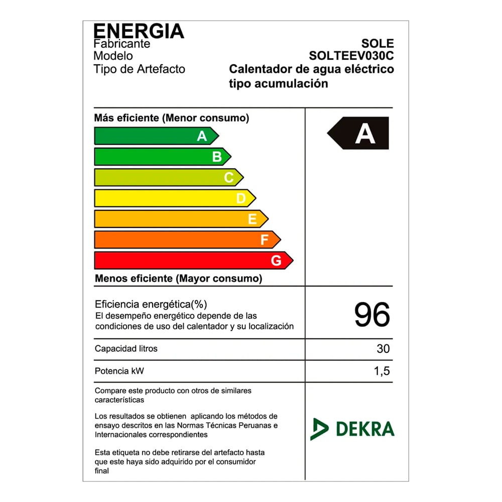 Capacidad de 30 litros, para un baño o punto de consumo continuo.