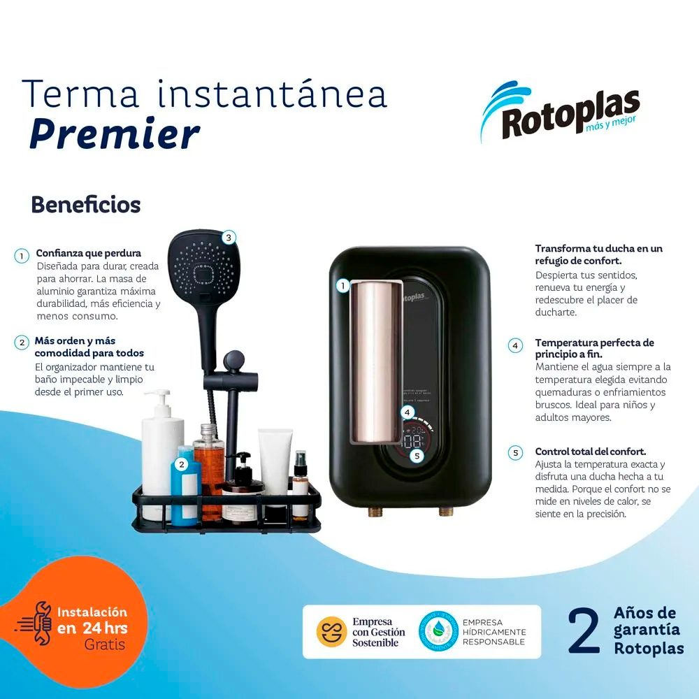 La Terma Instantánea Premier Rotoplas combina agua caliente al instante, eficiencia y confort en un diseño práctico para el hogar.
