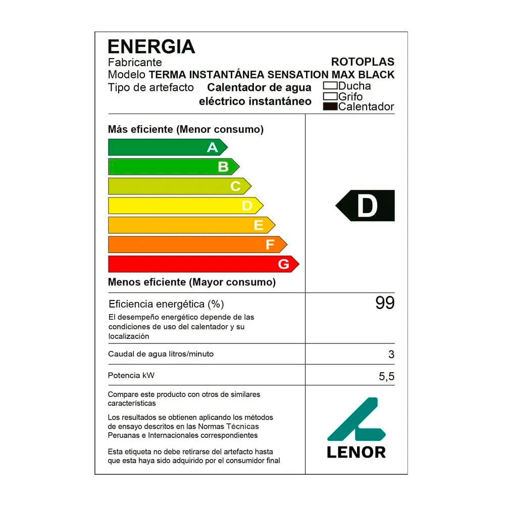 Terma Instantánea Sensation Max Negra Rotoplas