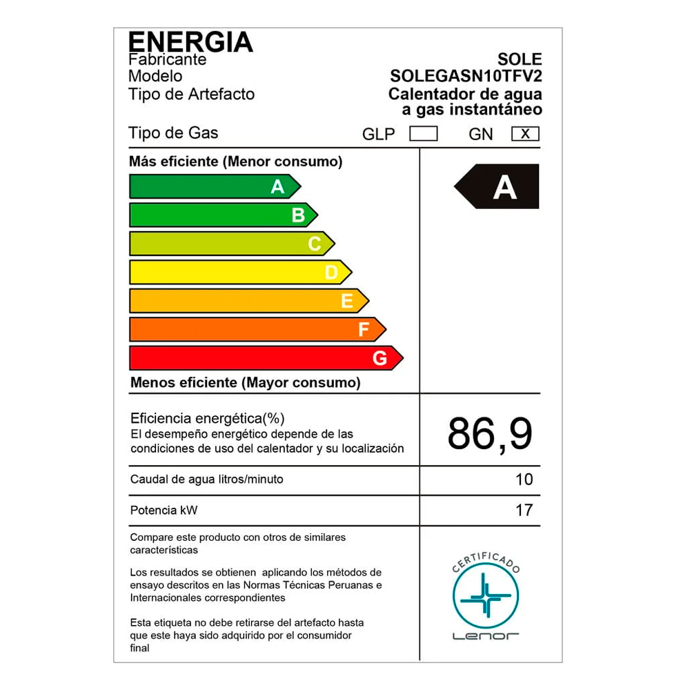 Modelo: SOLEGASN10TFV2