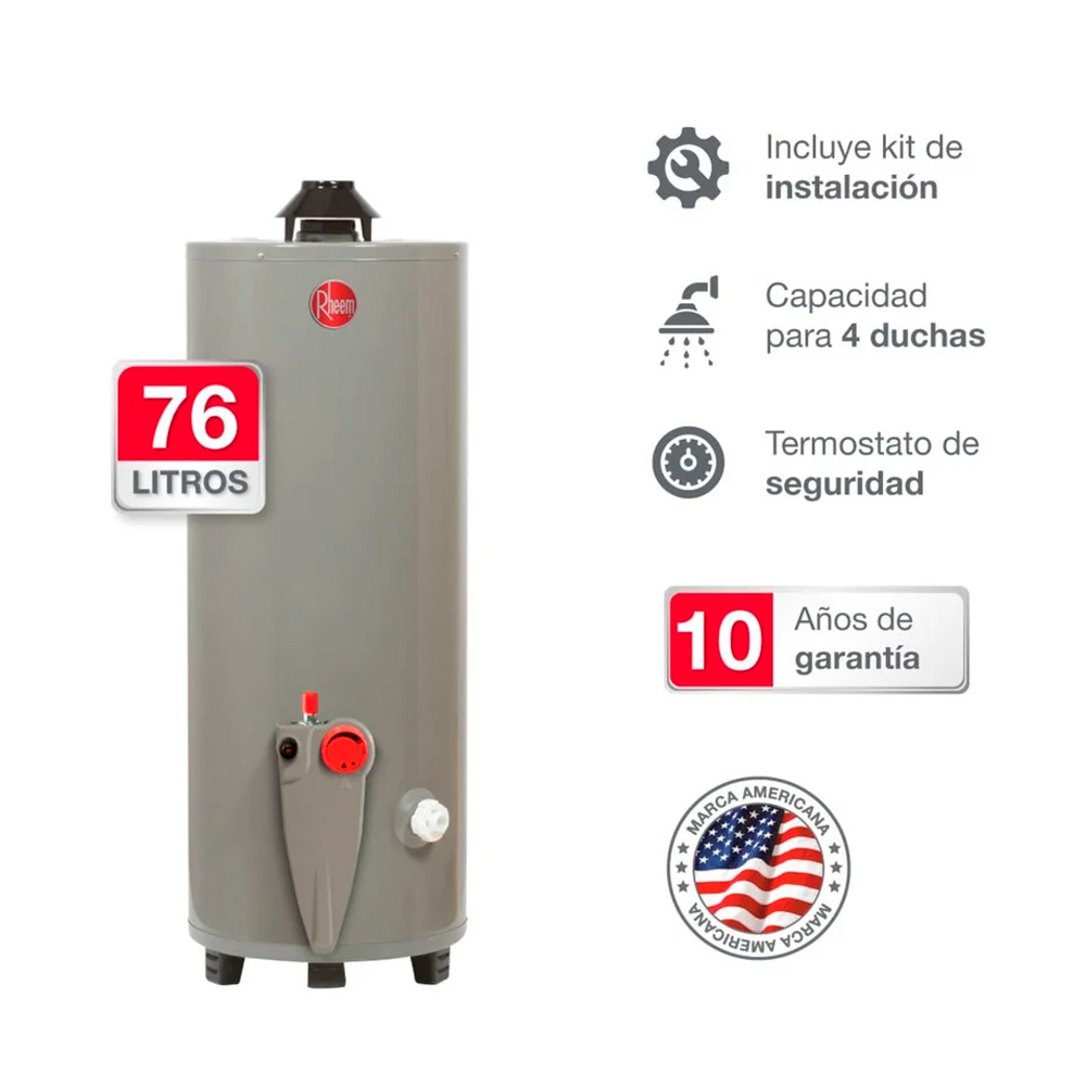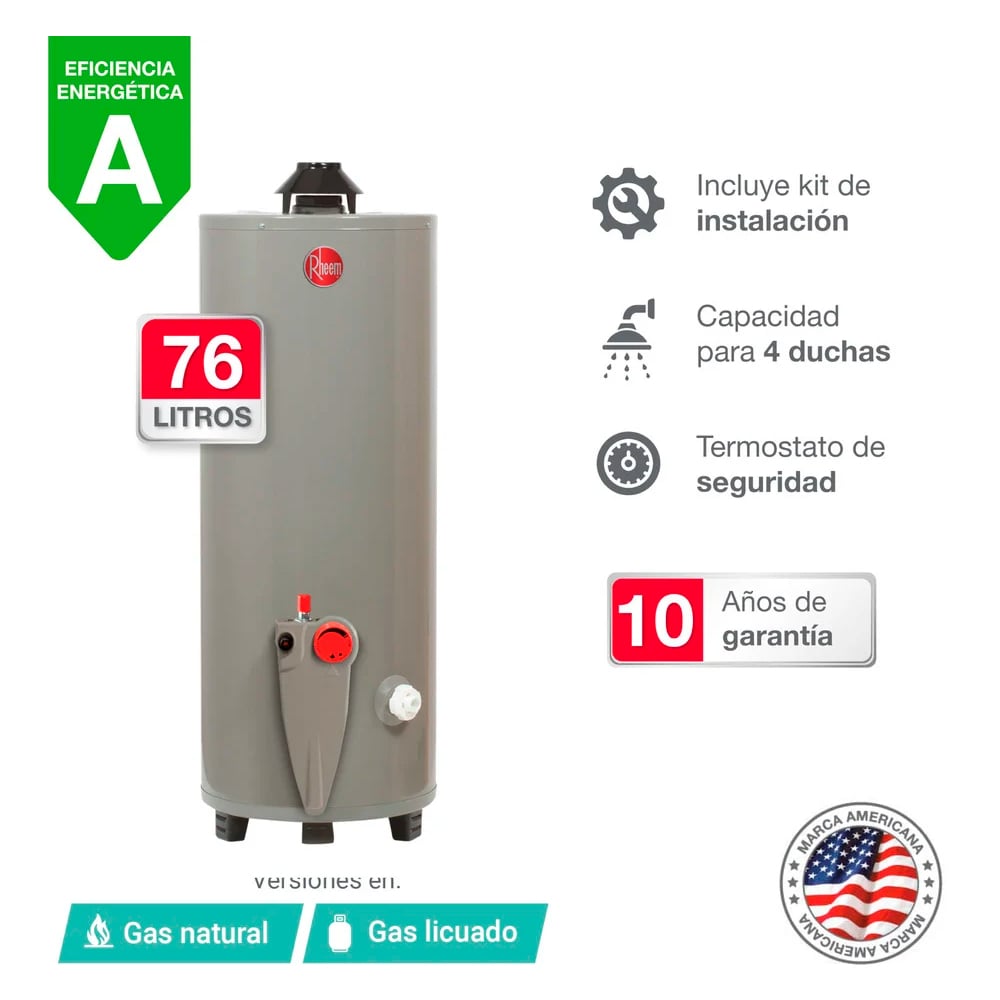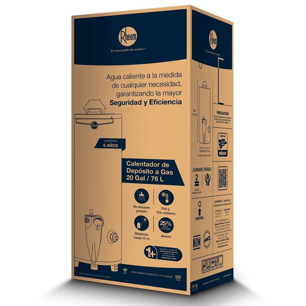 Tanque de grueso calibre con porcelanizado Rheemglas que alarga la vida del producto