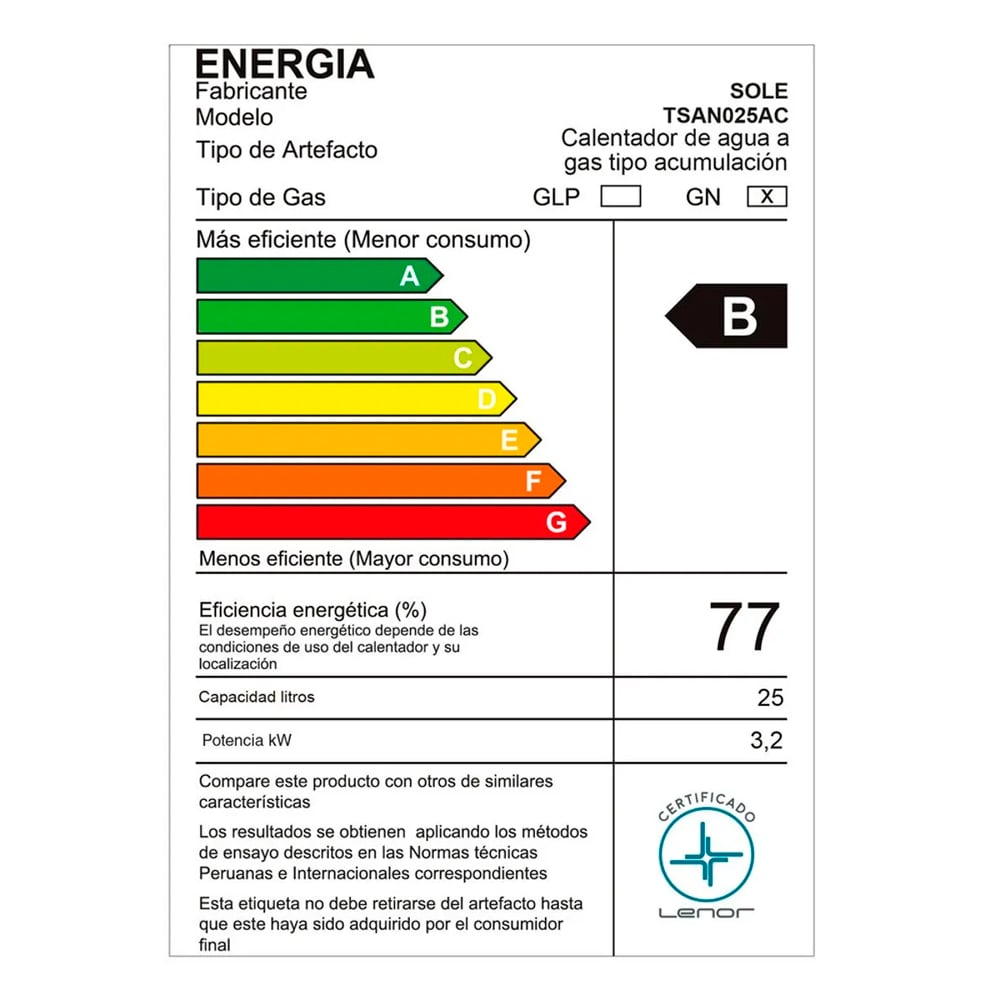 Termotanque Sole GN tipo A 25L + Accesorios TSAN025AC