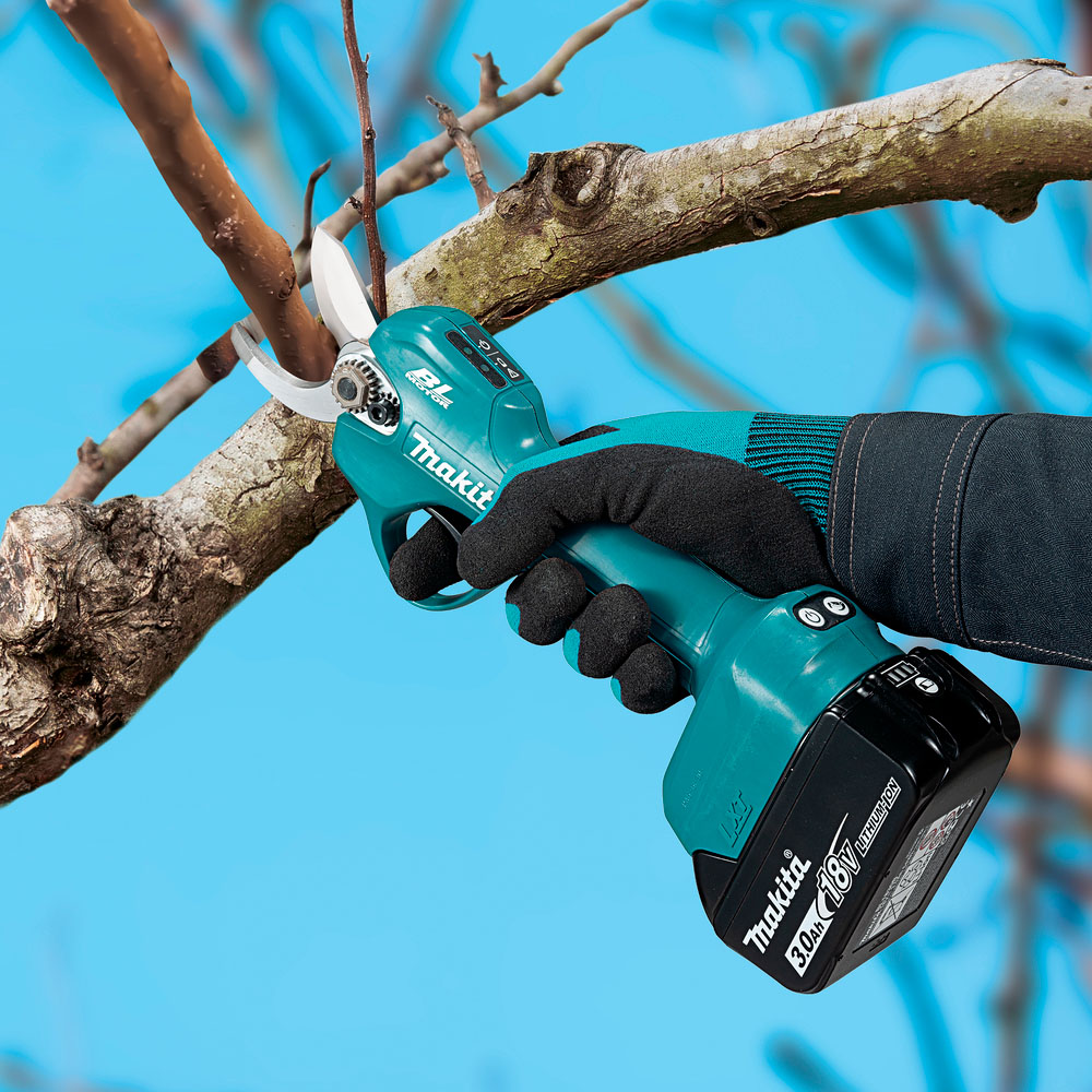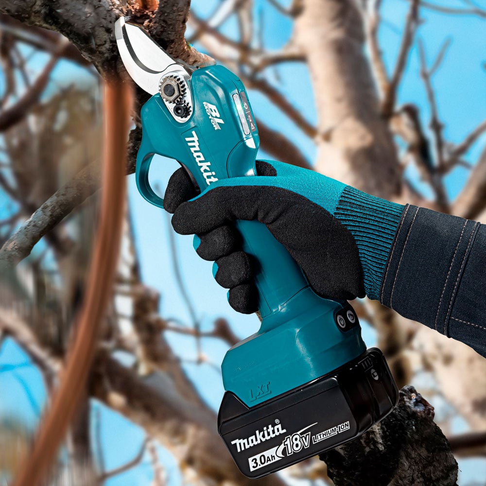 Tijeras de poda sin escobillas que cortan ramas de hasta 30 mm con una potencia suave y precisa.