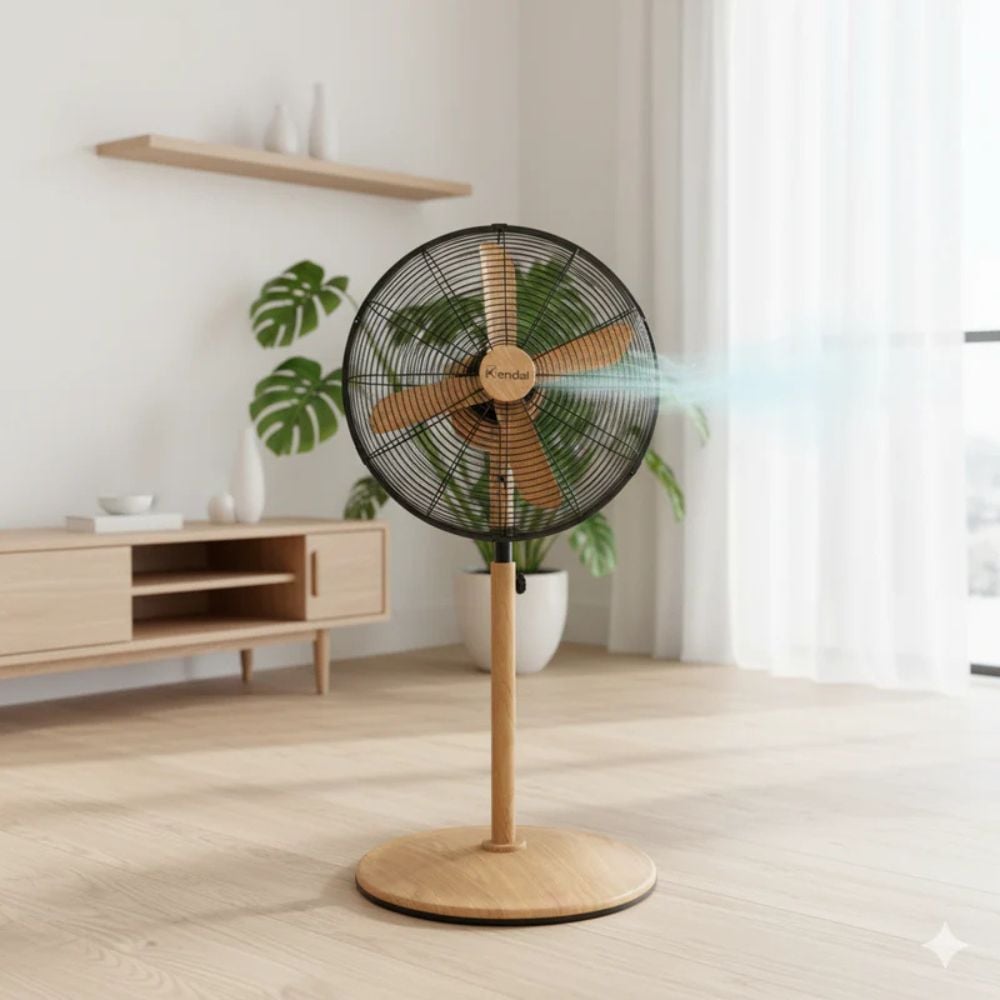 Refresca tus espacios con elegancia con el ventilador Kendal KZF-1616, una pieza que combina la fuerza del metal con detalles tipo madera para un toque moderno y decorativo. Su motor de 60 W y 100 % cobre garantiza un rendimiento potente y silencioso, ideal para usar en dormitorios, salas u oficinas.