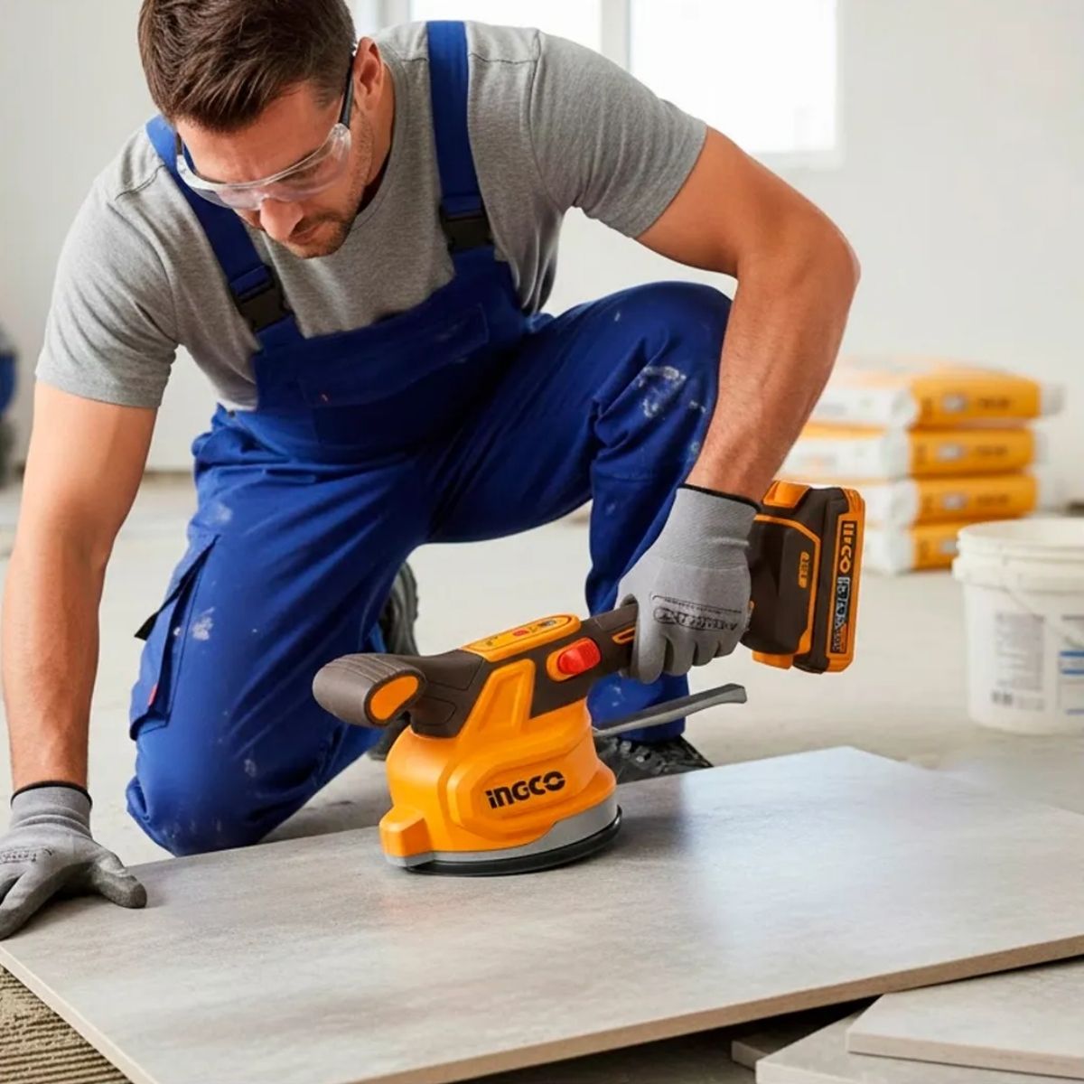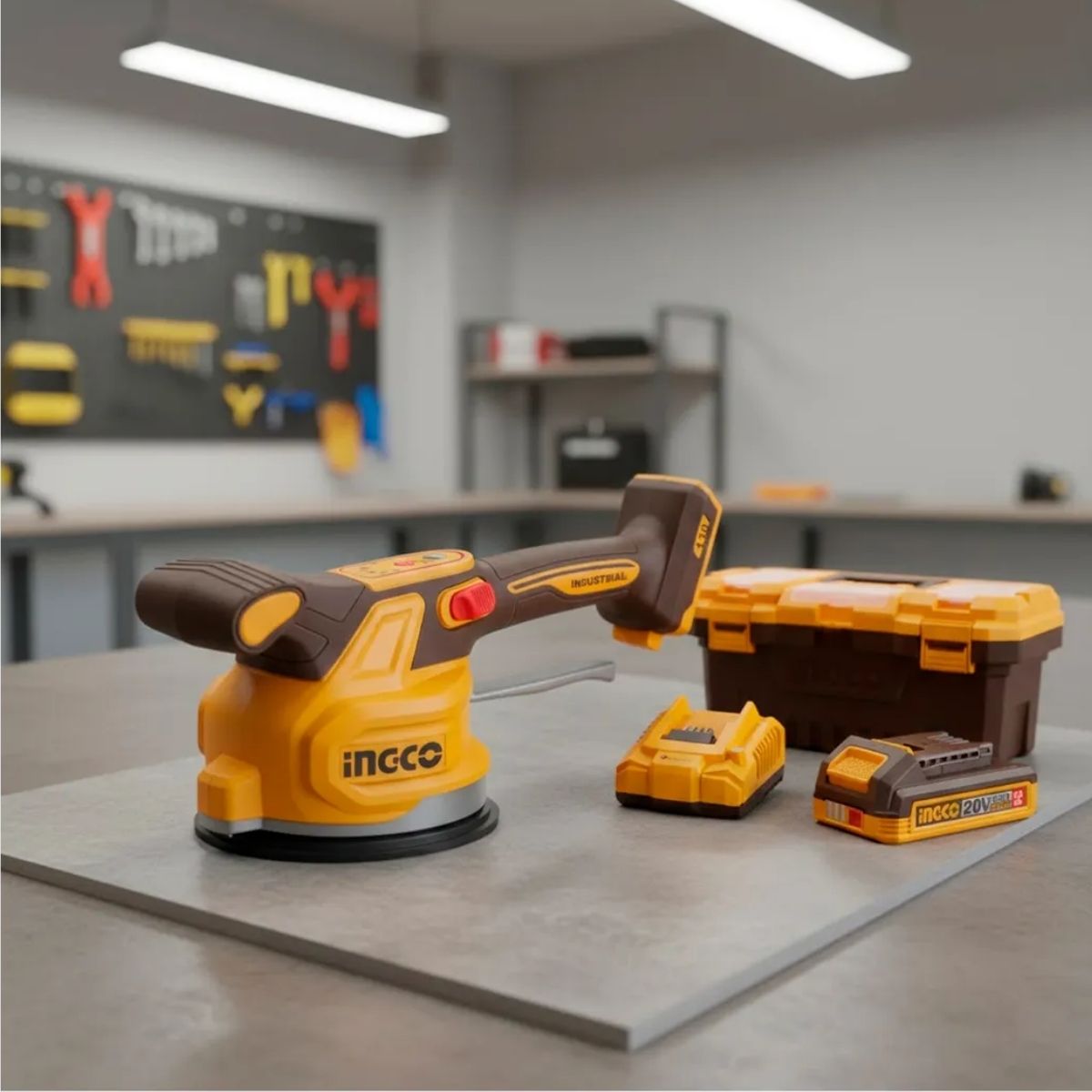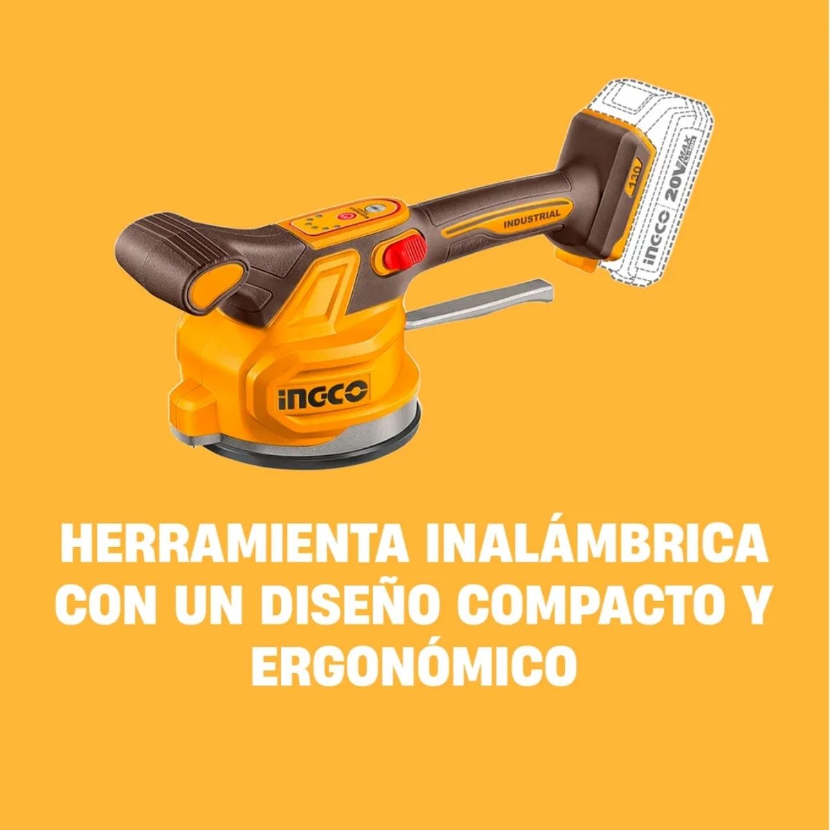 La ventosa vibradora INGCO CTVLI20018 es una herramienta inalámbrica diseñada para la instalación eficiente de cerámicos, porcelanatos y baldosas. Permite eliminar burbujas de aire y mejorar la adherencia del adhesivo, logrando acabados más uniformes y profesionales.